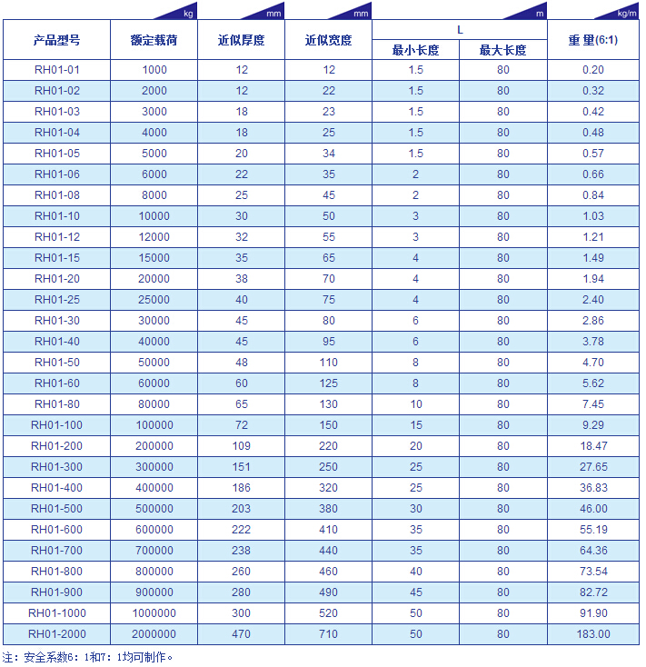 RH01型(高強環型)吊裝帶是一種以超高分子量聚乙烯為材料,其纖維的強度是滌綸高強絲的3-4倍,高模低伸型,比重是0.97g/cm3。