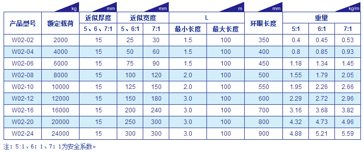 扁平吊裝帶參數表