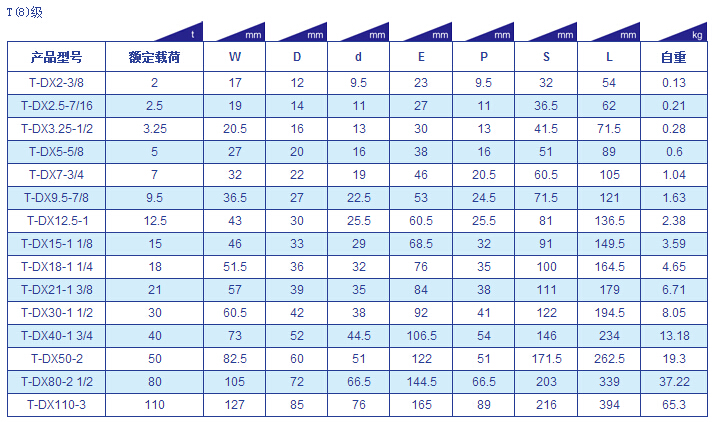 相同額定載荷的T8級卸扣和S6級卸扣相比尺寸減小了但是他們的額定載荷和功能卻沒有損失,主要用于空間有限的場合。