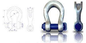 卸扣本體鍍鋅,銷軸鍍鋅后涂成藍色。