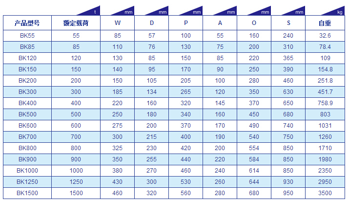 55t~300t最大試驗載荷為額定工作載荷的2倍。